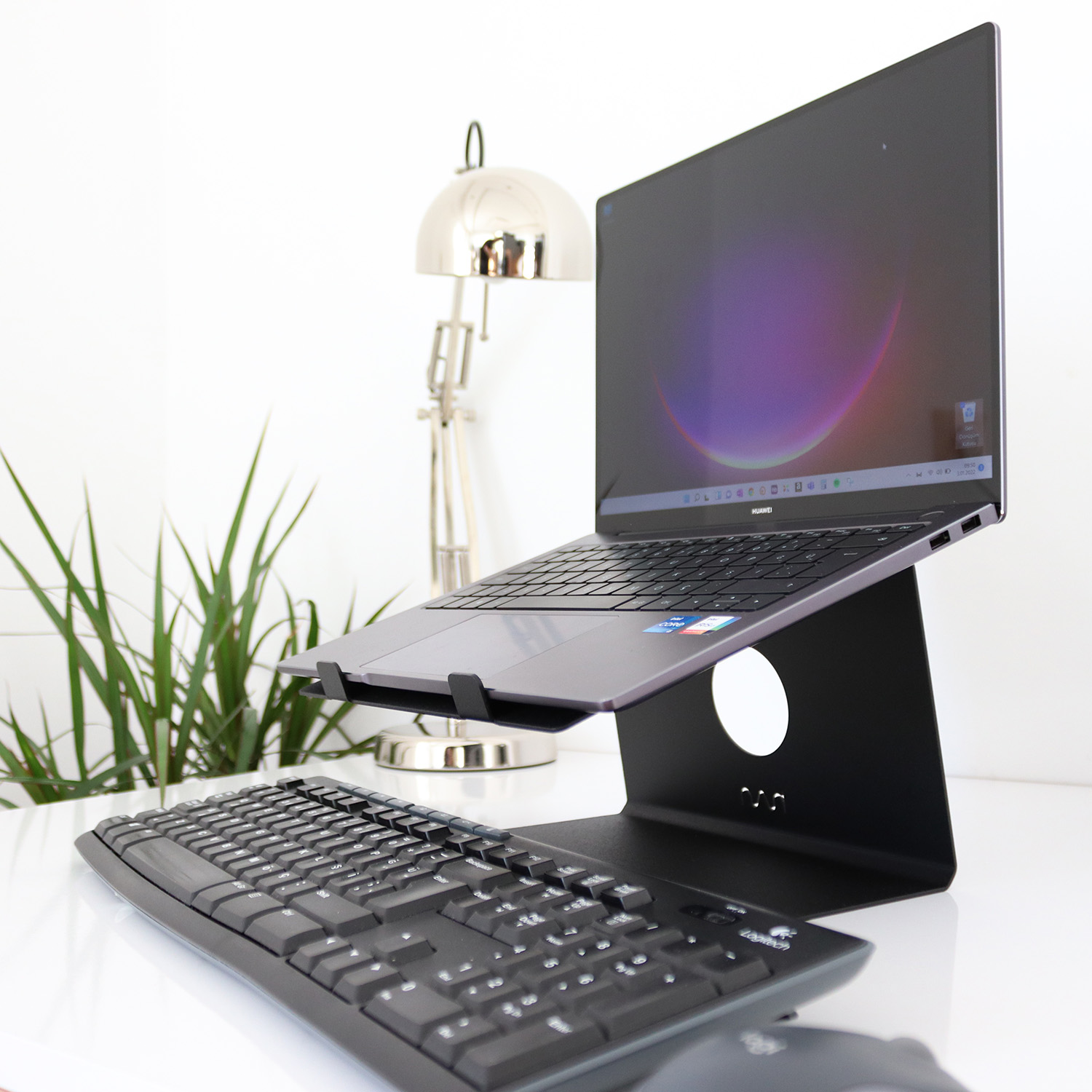 Harici monitör ile birlikte kullanılan laptoplar için dikey kullanım imkanı sayesinde masa üzerindeki alandan tasarruf etmenizi sağlar.